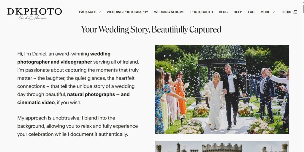 Wedding photography services in Dublin typically cost €2,000 to €4,000.